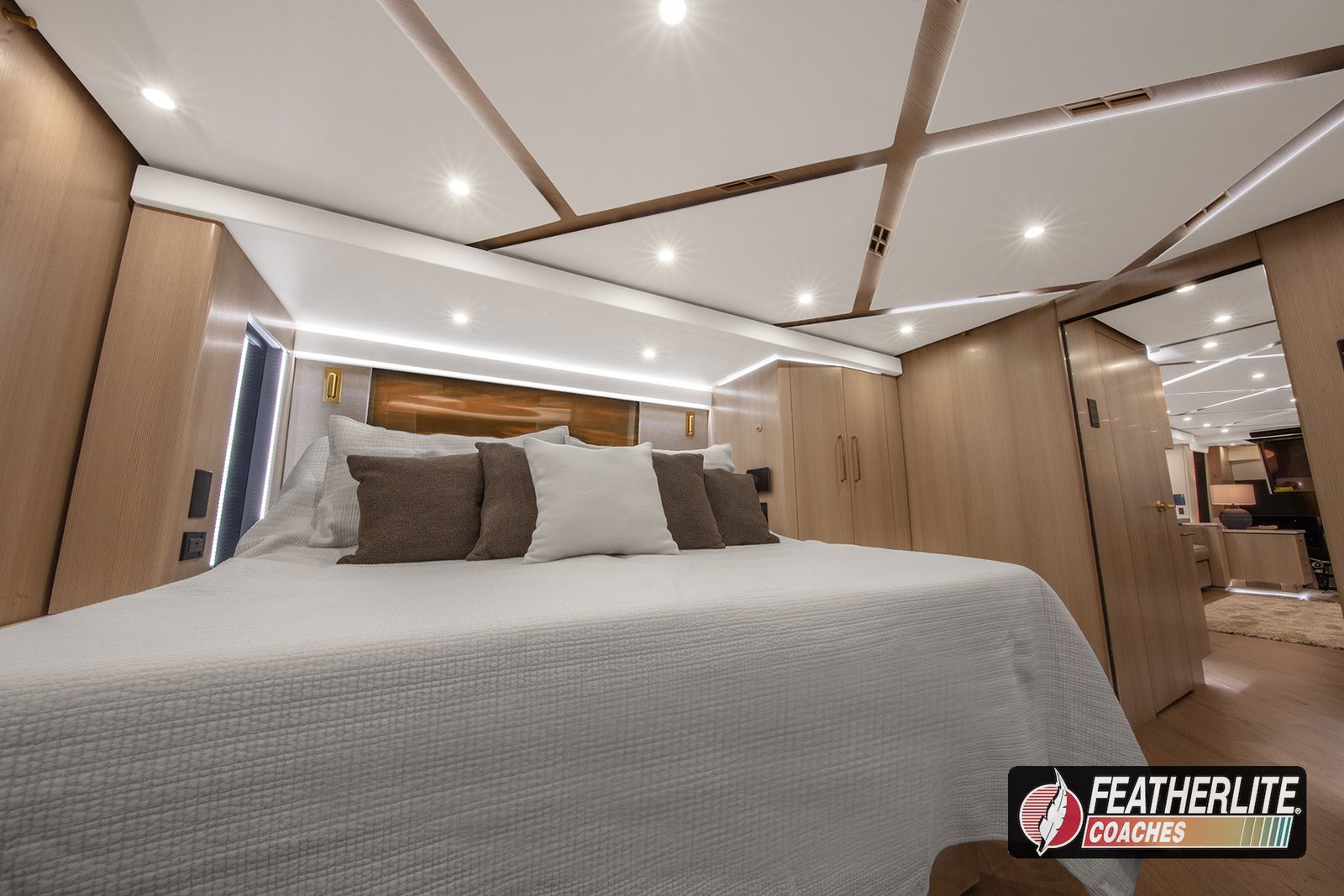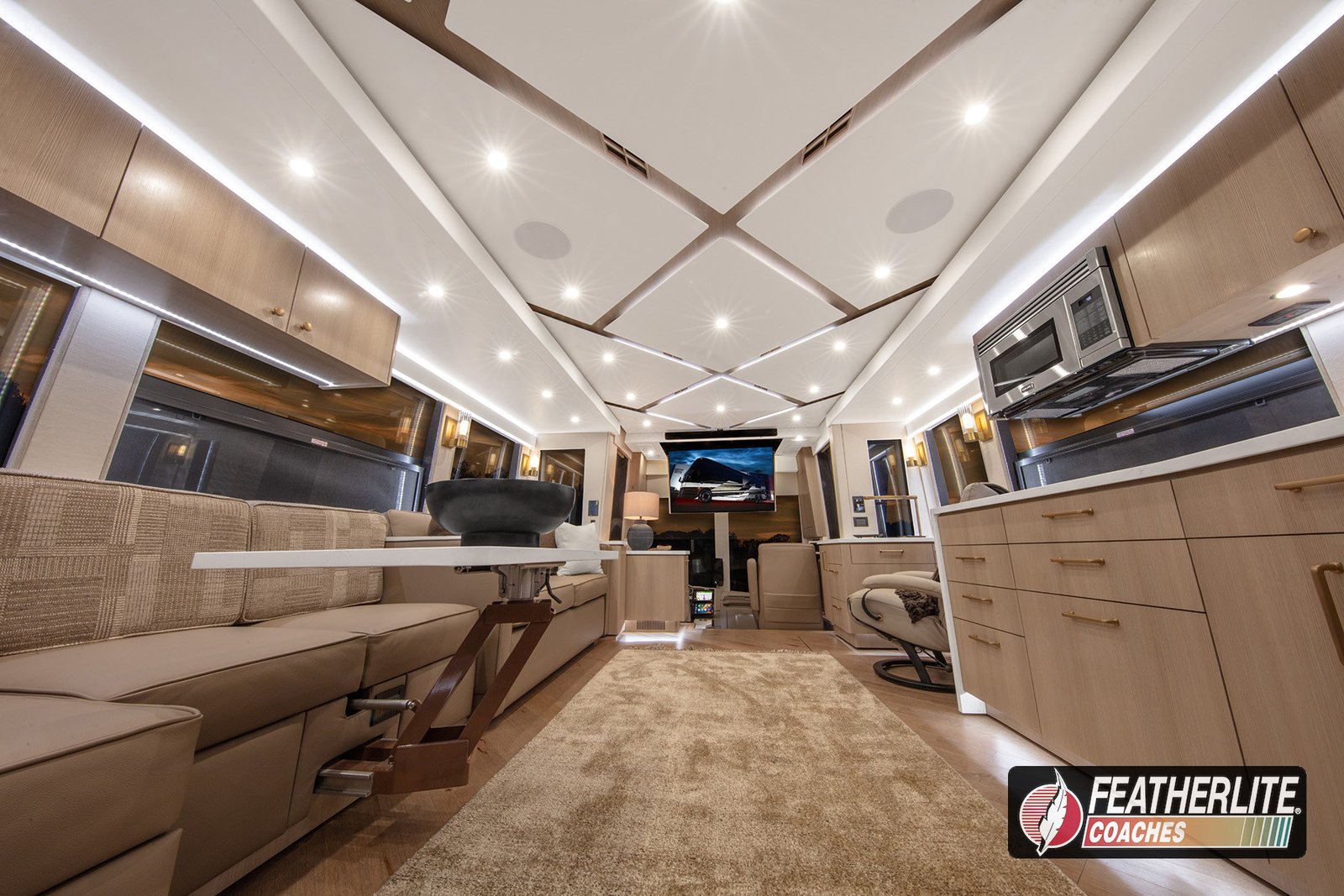 The material and information contained on this website is for general information purposes only. You should not rely upon the material or information on the website as a basis for making purchasing decisions. While we endeavor to keep the information up to date and correct, Featherlite Coaches makes no representations or warranties of any kind, express or implied about the completeness, accuracy, reliability, suitability or availability with respect to the website or the information, products, services or related graphics contained on our website for any purpose. Any reliance you place on such materials is therefore strictly at your own risk. Materials, floorplans, designs are subject to change without notice due to an abundance of variables including but not limited to product availability and our commitment to continuous innovation.