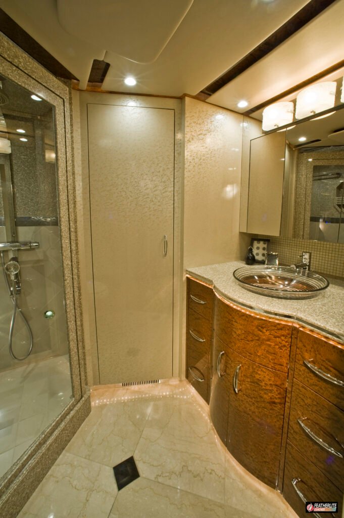 #FeatherliteDurango #MotorcoachLuxury #FeatherliteCoaches #RollingSpaDay #DurangoDesign #AnnSacksTile #YachtCraftedComfort #motorhomedesign #homeiswhereyouparkit #rvlife #LuxuryOnWheels #motorcoach #rvlifestyle #buslovers #buslife #motorhomeadventures #takeyourstylewithyou #buscribs #motorhomelife #Prevost #yachtquality #prevostlife #travelinluxury #Prevostdesign