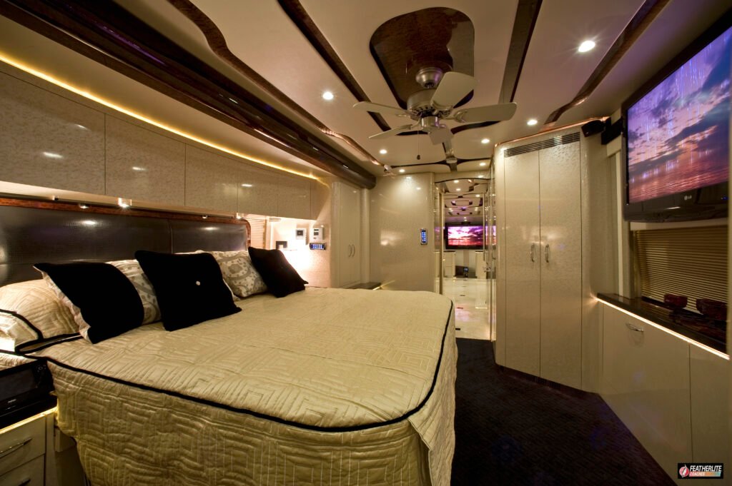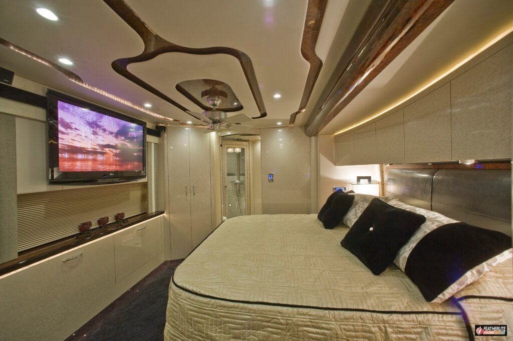 #motorhomedesign #homeiswhereyouparkit #rvlife #LuxuryOnWheels #motorcoach #rvlifestyle #buslife #featherlitecoaches #motorhomeadventures #takeyourstylewithyou #buscribs #motorhomelife #Prevost #yachtquality #prevostlife #travelinluxury #Prevostdesign #StateroomSanctuary #BuiltForTheRoadCraftedForYou