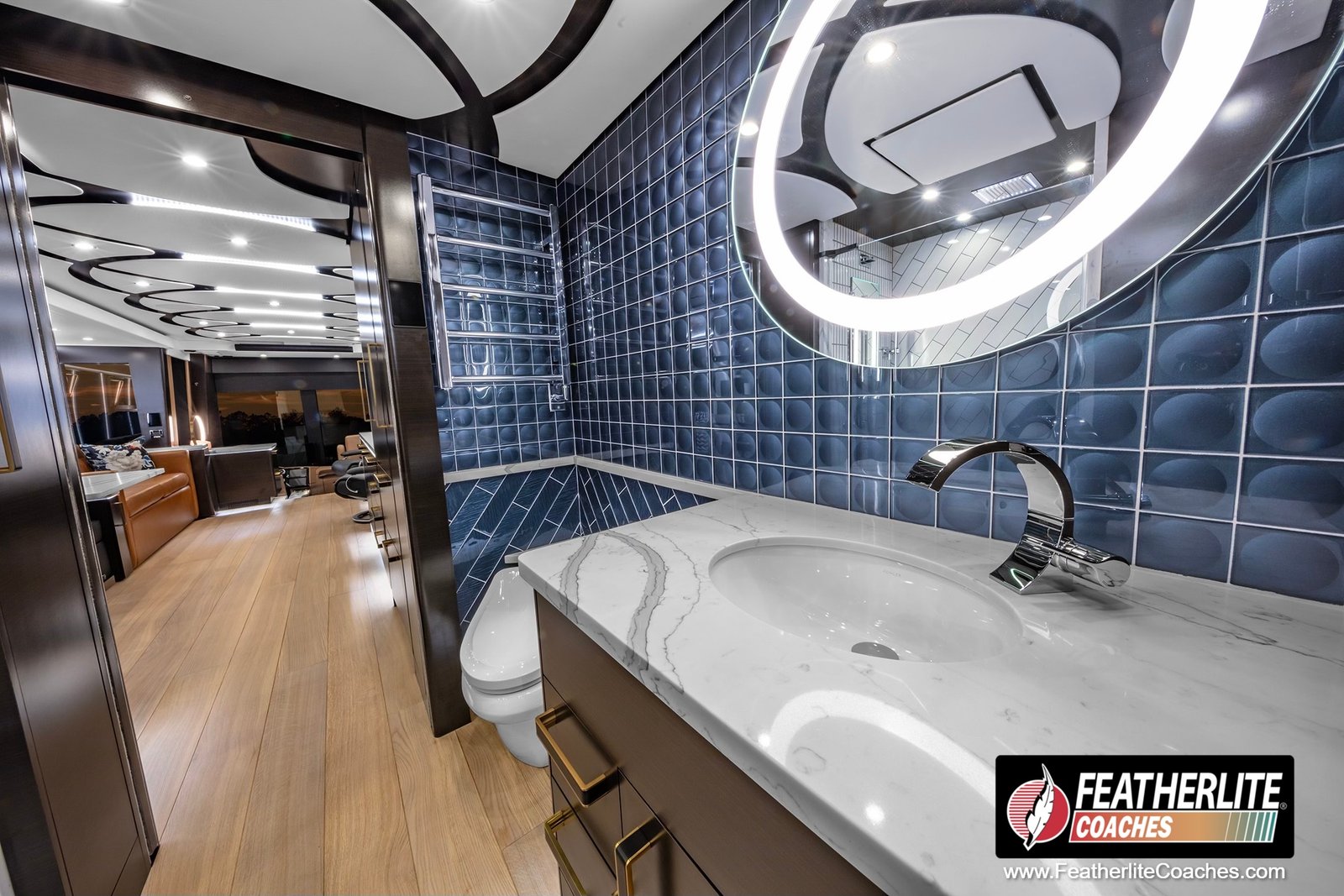 Coach 1356 | 2025 Featherlite Coaches Prevost | Mid Coach Bathroom Vanity