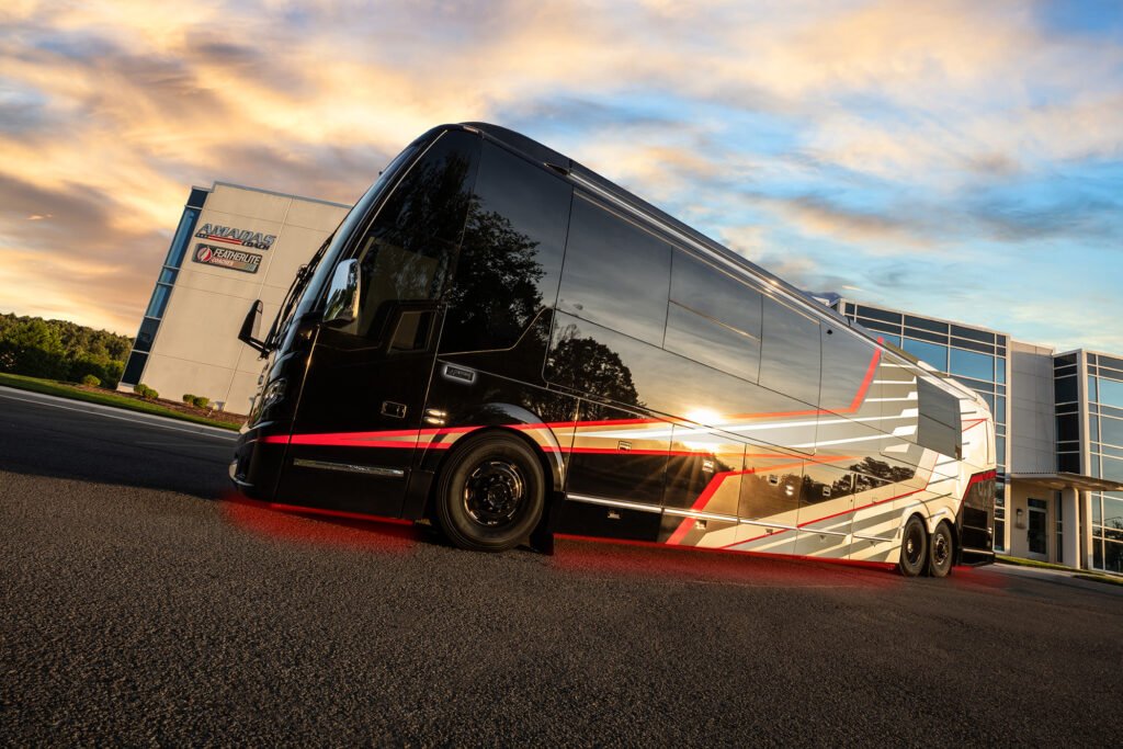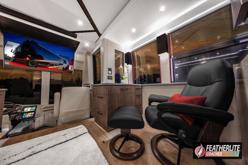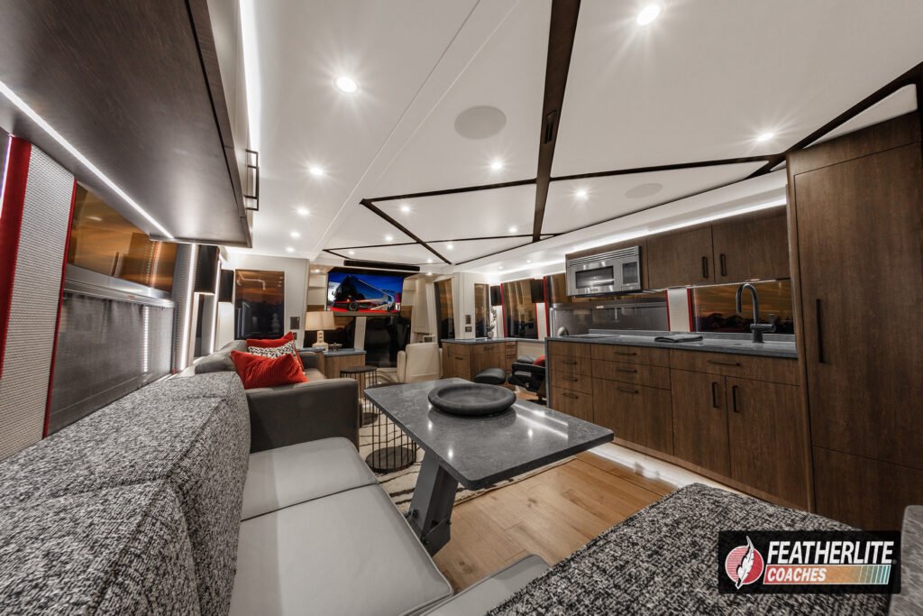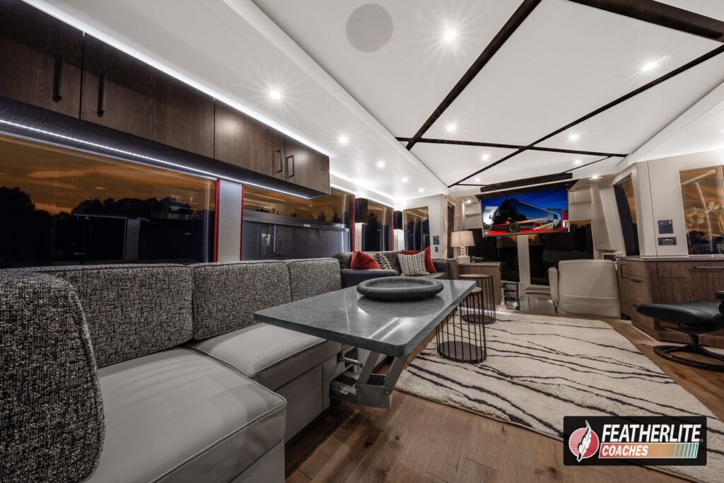 Now available, Misano is a bath & half, triple-slide Featherlite Prevost featuring a luxurious and spacious interior with the simplest coach control system in the industry. Contact us today to take ownership of this coach now.