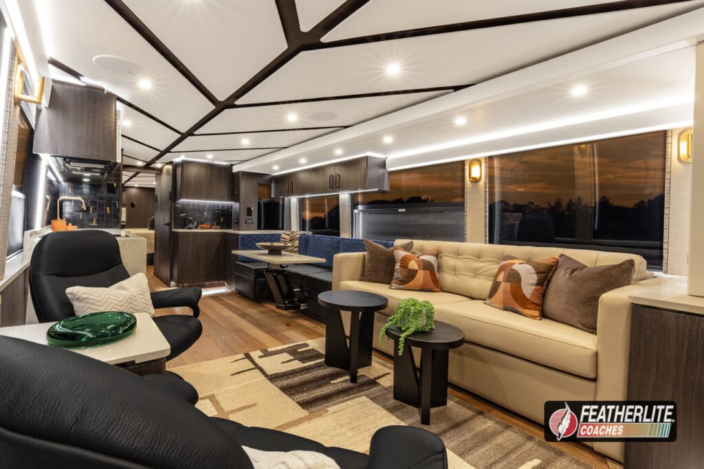 Cherohala is one of the most scenic byways in the United States and as such, a befitting moniker for this stunning 2026 Featherlite Coaches Prevost H conversion motor coach. Now available at Featherlite Coaches, Cherohala is a bath & half, double-slide featuring offering the most high performance coach ownership experience available wrapped in luxurious packaging.