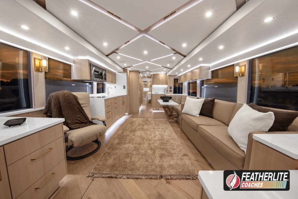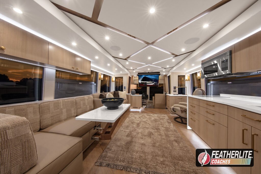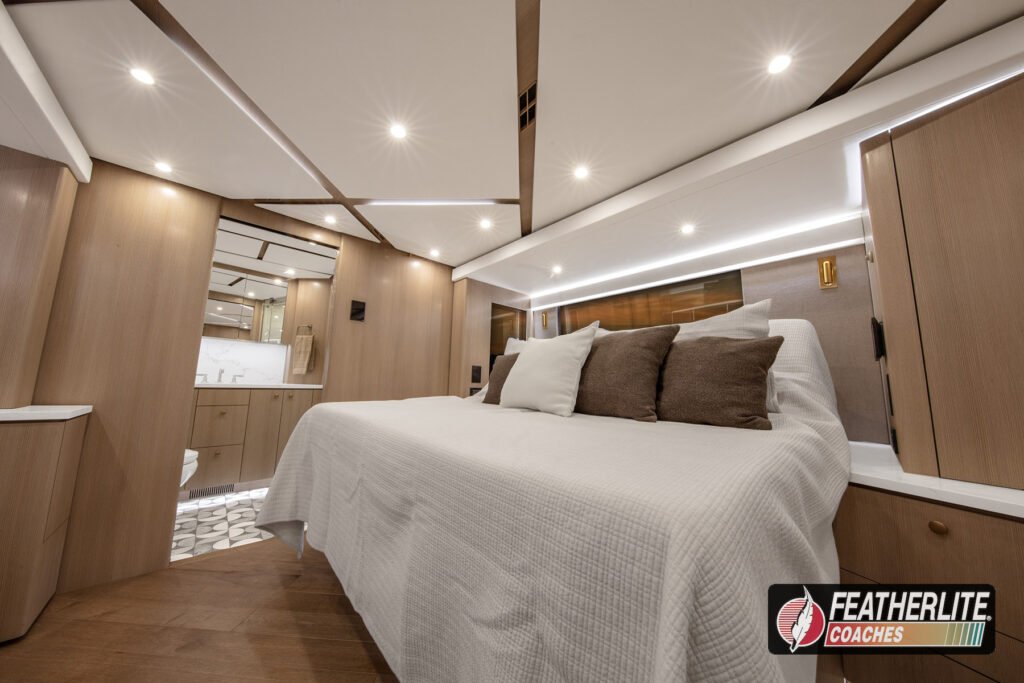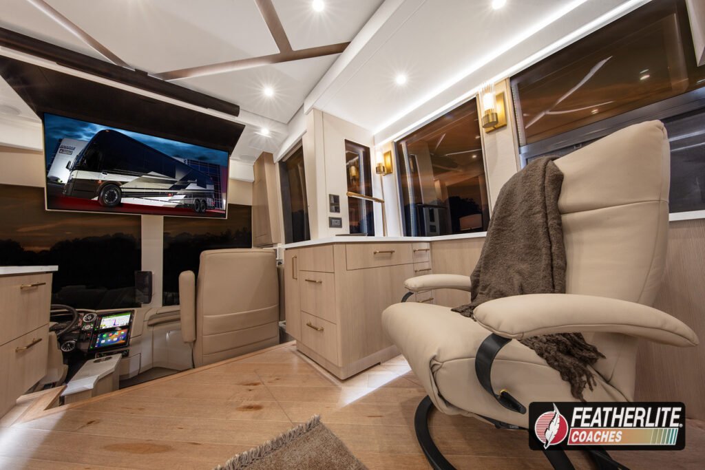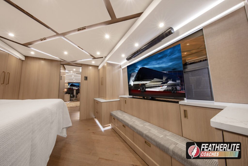 Featherlite Coaches crafts the most desired motorhomes in the Prevost conversion industry. Known for reliability, ease of use and performance, these yacht quality luxury coaches are hand crafted for years of luxurious please on the open road. Holeshot is a prime example of why Featherlite is known as the most desired coach in the conversion industry.