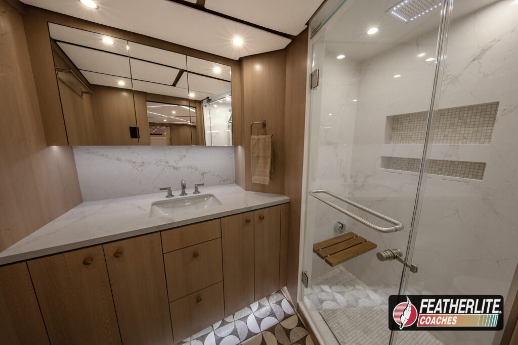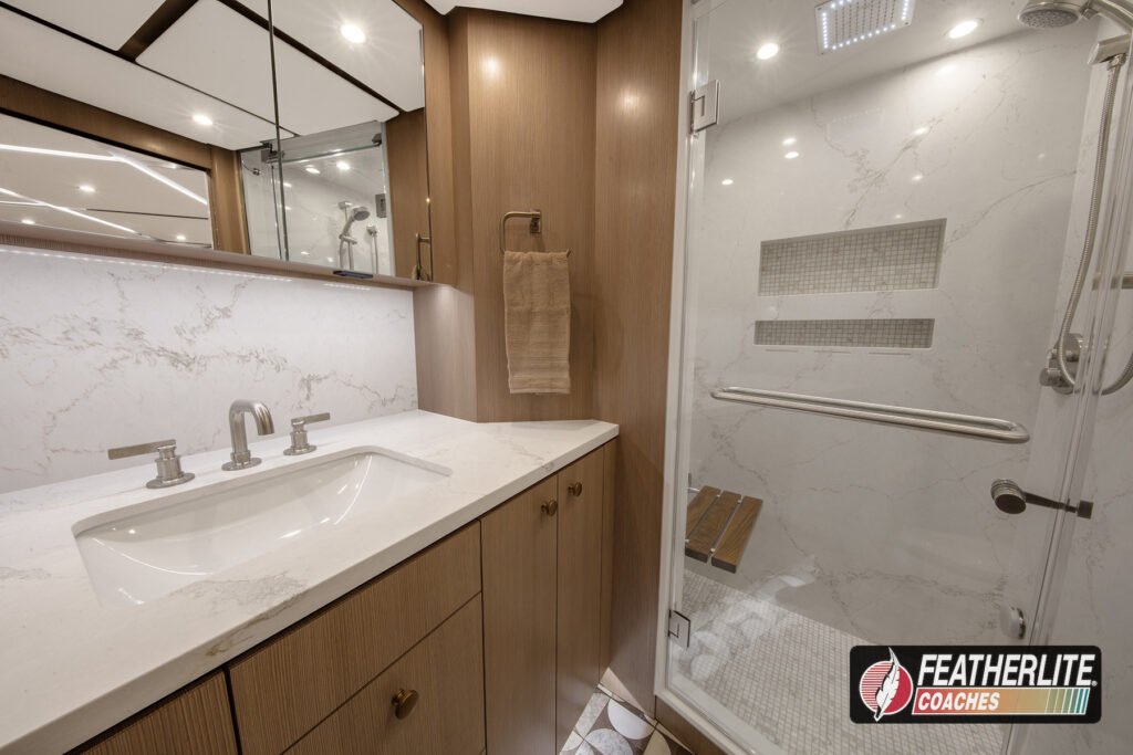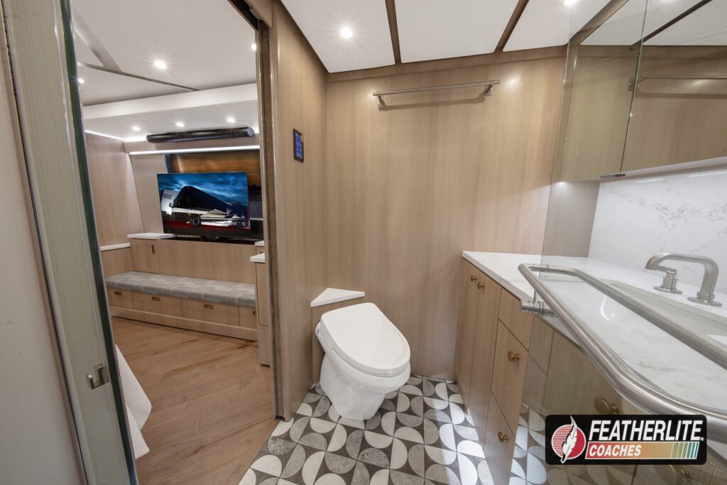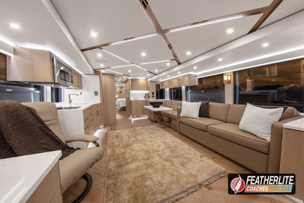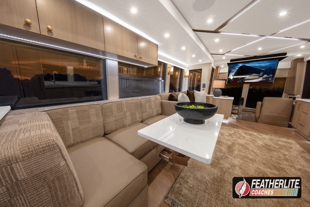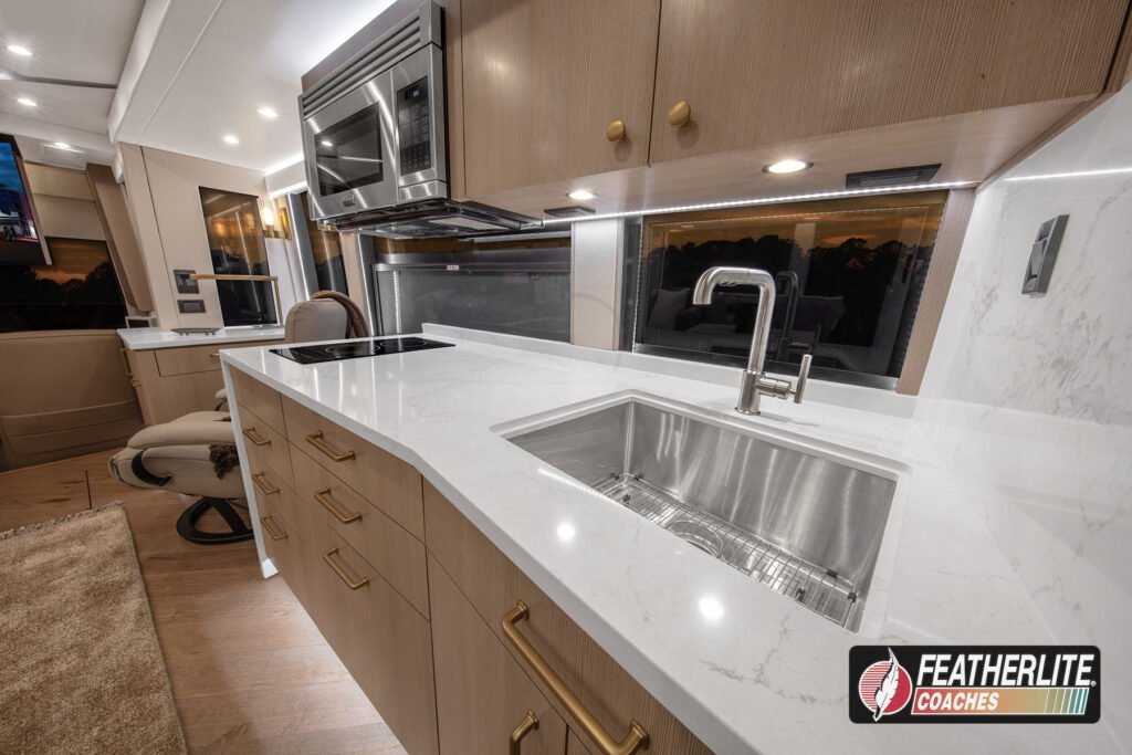 Featherlite Coaches crafts the most desired motorhomes in the Prevost conversion industry. Known for reliability, ease of use and performance, these yacht quality luxury coaches are hand crafted for years of luxurious please on the open road. Holeshot is a prime example of why Featherlite is known as the most desired coach in the conversion industry.